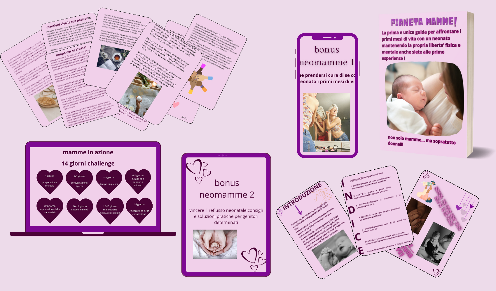 "PIANETA MAMME" è l'unica in grado di fornire soluzioni e consigli efficaci e sicuri su come affrontare i primi mesi di vita con un neonato,prendendosi cura del piccolo ma anche di se stessi !